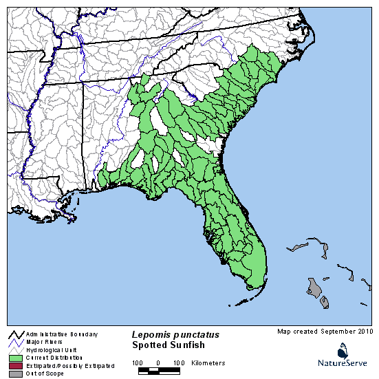 Where possible I’ll put up a picture and a distribution map of those that I’ve caught. Click the map for more information about that particular species. The distribution maps come from the original NatureServe Explorer or the USGS Nonindigenous Aquatic Species site. Both are pretty good resources for finding information on specific plants and animals. I did not produce these distribution maps so I can’t confirm their complete accuracy, but I do trust they are mostly accurate.