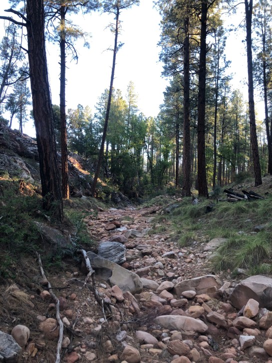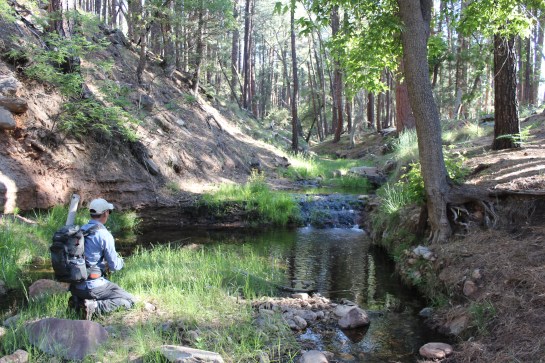 It’s an strange feeling walking up a dry creek bed to fish for trout, but my guess is it’s not that strange to the anglers who frequent Mogollon Rim streams in Arizona. Eventually we found water and soon enough there were pools deep enough to hold fish.