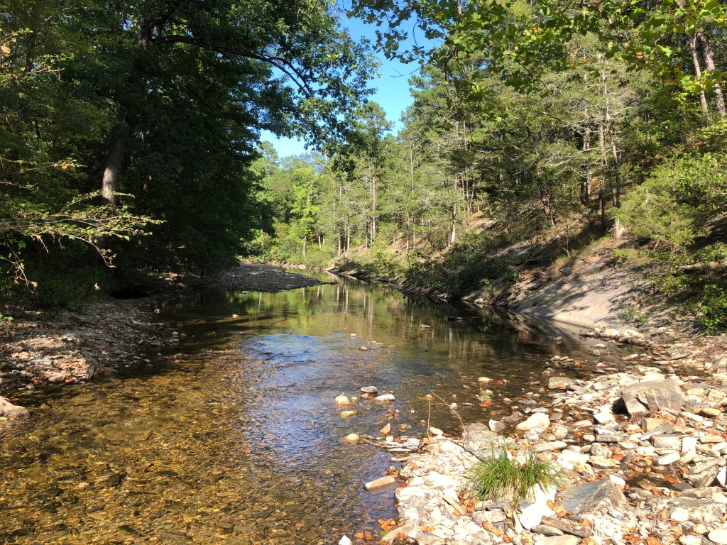 While we were up there I did find a little bit of time to sneak away and fish. I fished the Lower Mountain Fork in Beavers Bend last year in early Fall and remember the fishing being tough. This time around I decided to explore a bit of the Ouachita NF backcountry and find a creek where I could target some native fish. After a lengthy drive down numerous dirt roads I arrived at a creek crossing and decided to check it out.