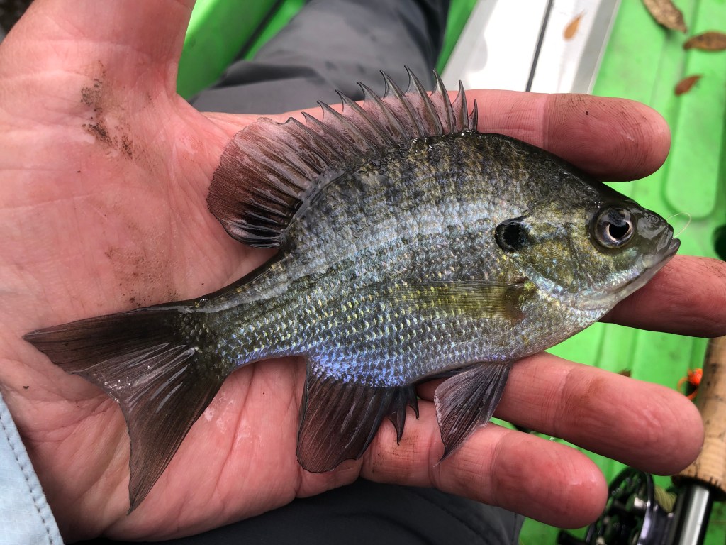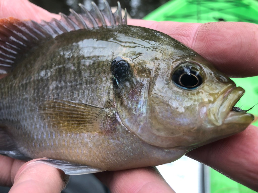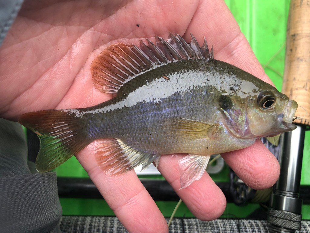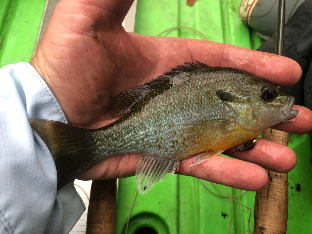 This was a new species for me, a weed shiner, so I wasn’t made at him. Eventually I started catching sunfish too.