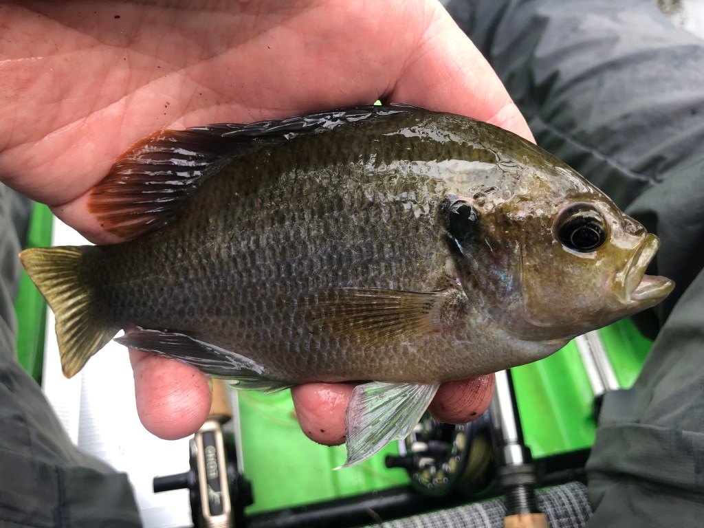 Next fish to the boat was a redbreast sunfish. A sunfish species I am familiar with from my time in northern Alabama, but one I had not caught in a while – add it to the list. This one was not as colored up as others I’ve come across, it may not be the right time of year for that.