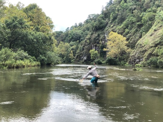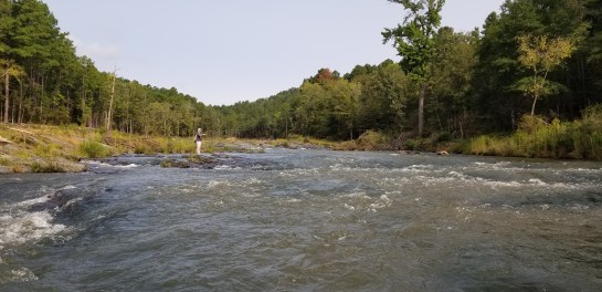 With renewed confidence I kept on swimming that crawfish pattern around anything and everything I floated by and eventually caught the spotted sunfish above. It was a good sized stumpknocker that looked like he’d seen better days. I was happy to have caught something else because despite my confidence the fishing was terribly slow. The river was beautiful though with the cypress trees giving it a little Fall color. Part of me feeling out of place was the river was a little bigger than I like to fish. I’m a small water guy. I dig the creeks. So medium or large rivers always intimidate me.