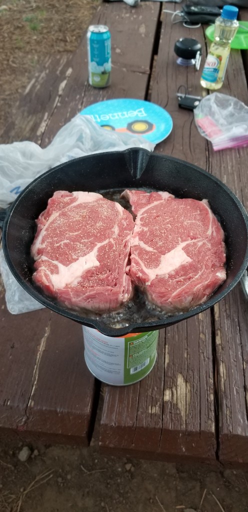 I stopped at a local grocery and bought a steak and whatever beer they had that was local to celebrate accomplishing a goal that was probably meaningless to 99% of the general population. Combine that with a campfire and it made for a much better night than the rainy one I had the night before.