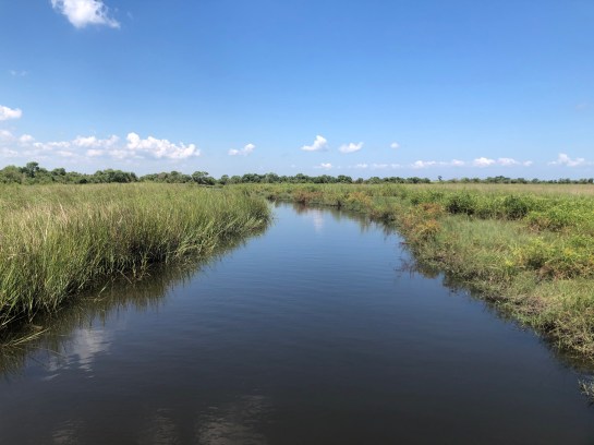 Water clarity was excellent where there was submerged vegetation and it was in most of the bayous and ponds I fished. Conditions were pretty nice too, partly cloudy with a little breeze, super hot though. Fish activity was off the charts. Baitfish, shrimp, and crabs were in abundance and that brought out all the usual predators. I even had a shot at sightfishing for a few blue cats, but I pulled the hook from one of their mouths when I got all excited.