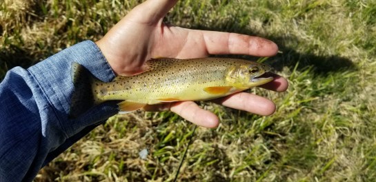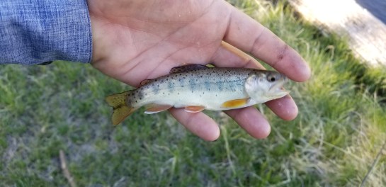 Naturally Blake caught the first fish, a brown trout. He was fishing behind me so I was doing something wrong. That fish took either a small streamer or a nymph, I don’t remember exactly, but I know it wasn’t a dry, which is what I was throwing. I switched up and soon had the pleasure of bringing a fish to hand of my own.